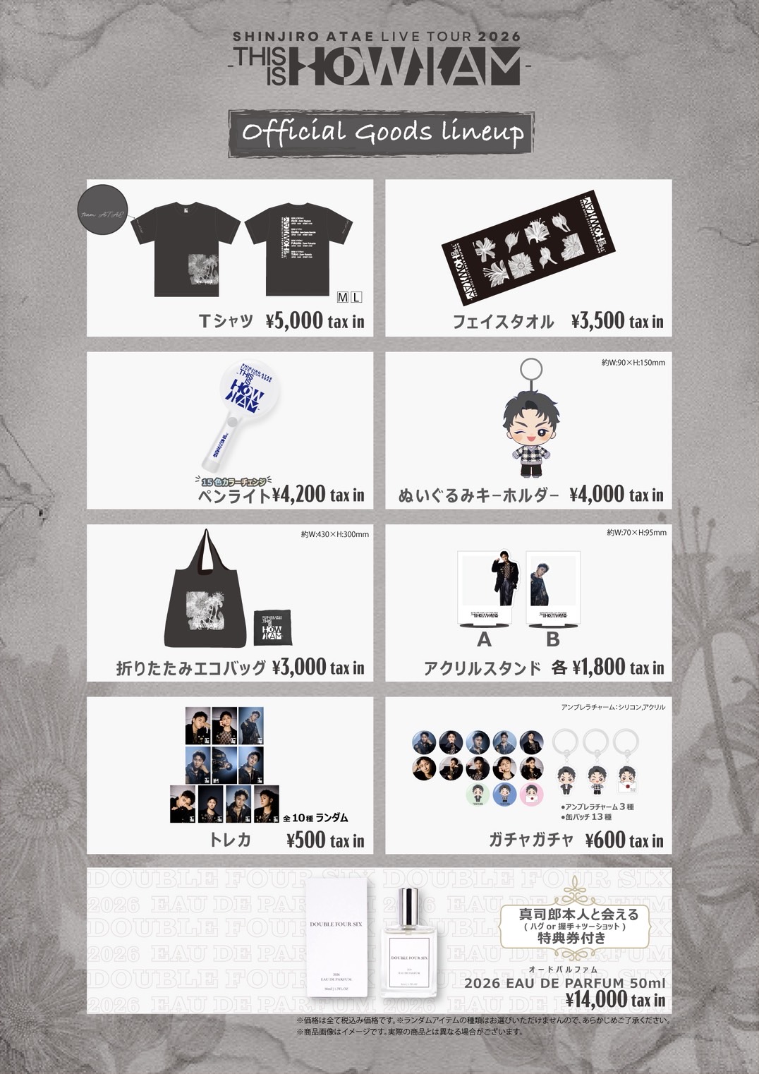『SHINJIRO ATAE LIVE TOUR 2026 – THIS IS HOW I AM -』オフィシャルグッズの詳細が発表されました!
